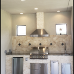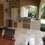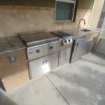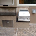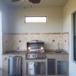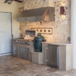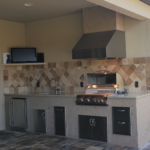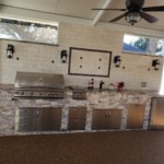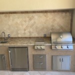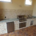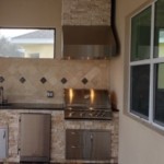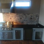 You may want to finish the sides of your kitchen/fireplace with Stone or our unique crushed granite stucco. These surfaces give you the most longevity for the life of your kitchen. You may also want to match the stucco of your house. We will never specify wood or other combustable materials for the cabinets or anywhere else in the structure. We only specify the highest quality materials that give you many, many years of enjoyment.